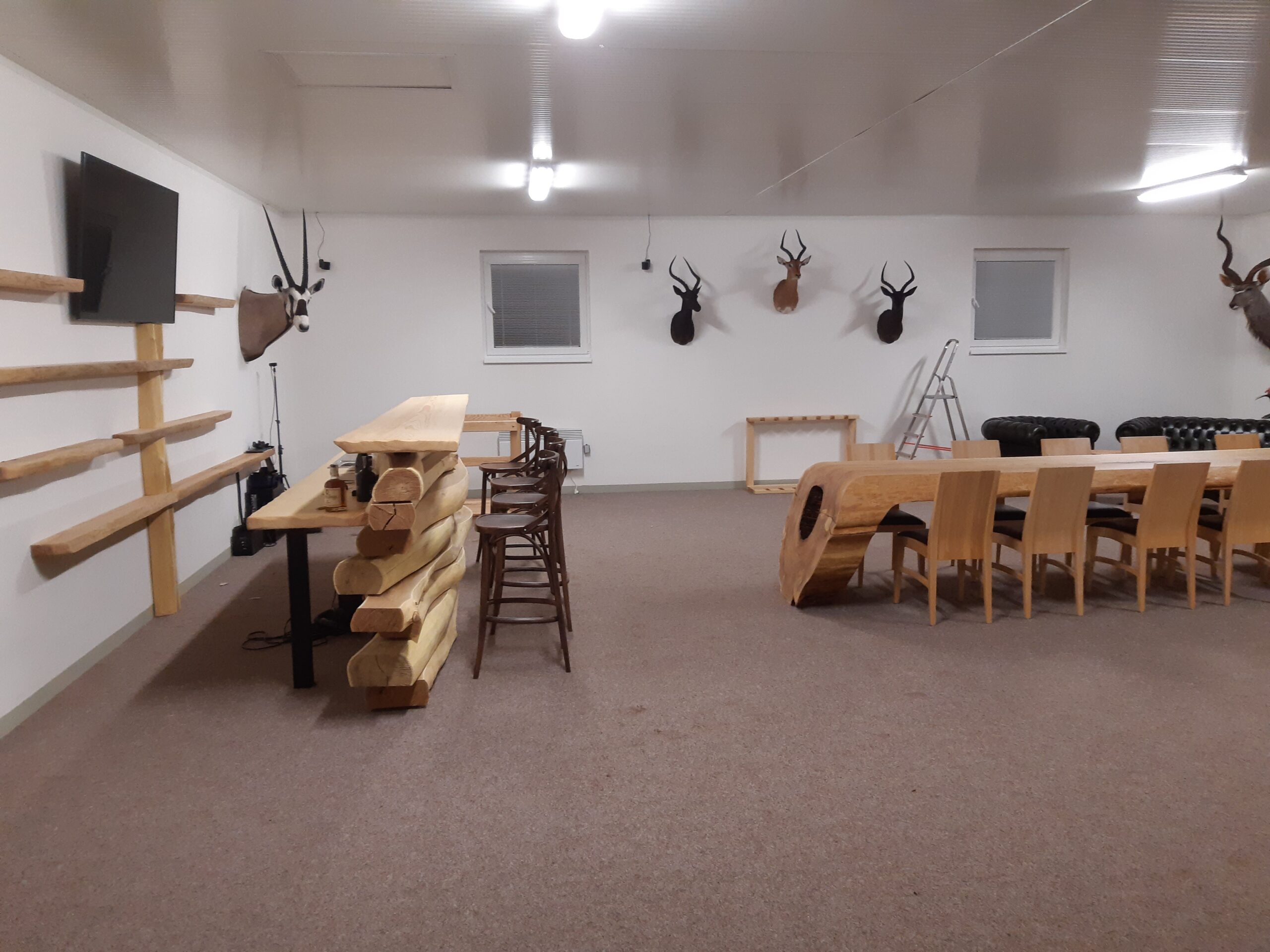 Vybavení společenských místností Ukázka dvou projektů, kde jsme realizovali kompletní vybavení společenských místností. Vyráběli jsme obložení barů, lavice a stoly. Za zmínku stojí dva speciální stoly – jeden epoxidový z fošny a druhý v kmene stromu s hmotností přes 600 kg. Štítky:Výrobky z masivu